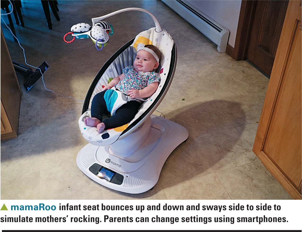 The products produced by 4moms (Thorley Industries LLC, Pittsburgh, Pennsylvania) that rock and comfort babies are extremely popular among my patients. These include the rockaRoo that features 5 speeds and a front-to-back motion as well as the ability to connect to a smartphone to play music of the parent’s choice. In contrast, the mamaRoo infant seat bounces up and down and sways from side to side, to simulate the motion of mothers rocking their infants (aka, the “mommy dance”). It also has built-in sounds, and it can connect via Bluetooth to smartphones so the parent can change settings without getting up from the couch when enjoying a well-deserved rest.