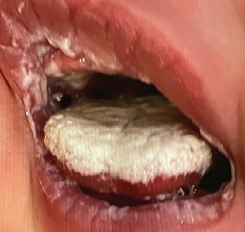 Diagnosis: COVID-19–associated pseudomembranous candidiasis