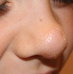 What's the cause for an asymptomatic plaque that has been growing slowly on a boy's nose?